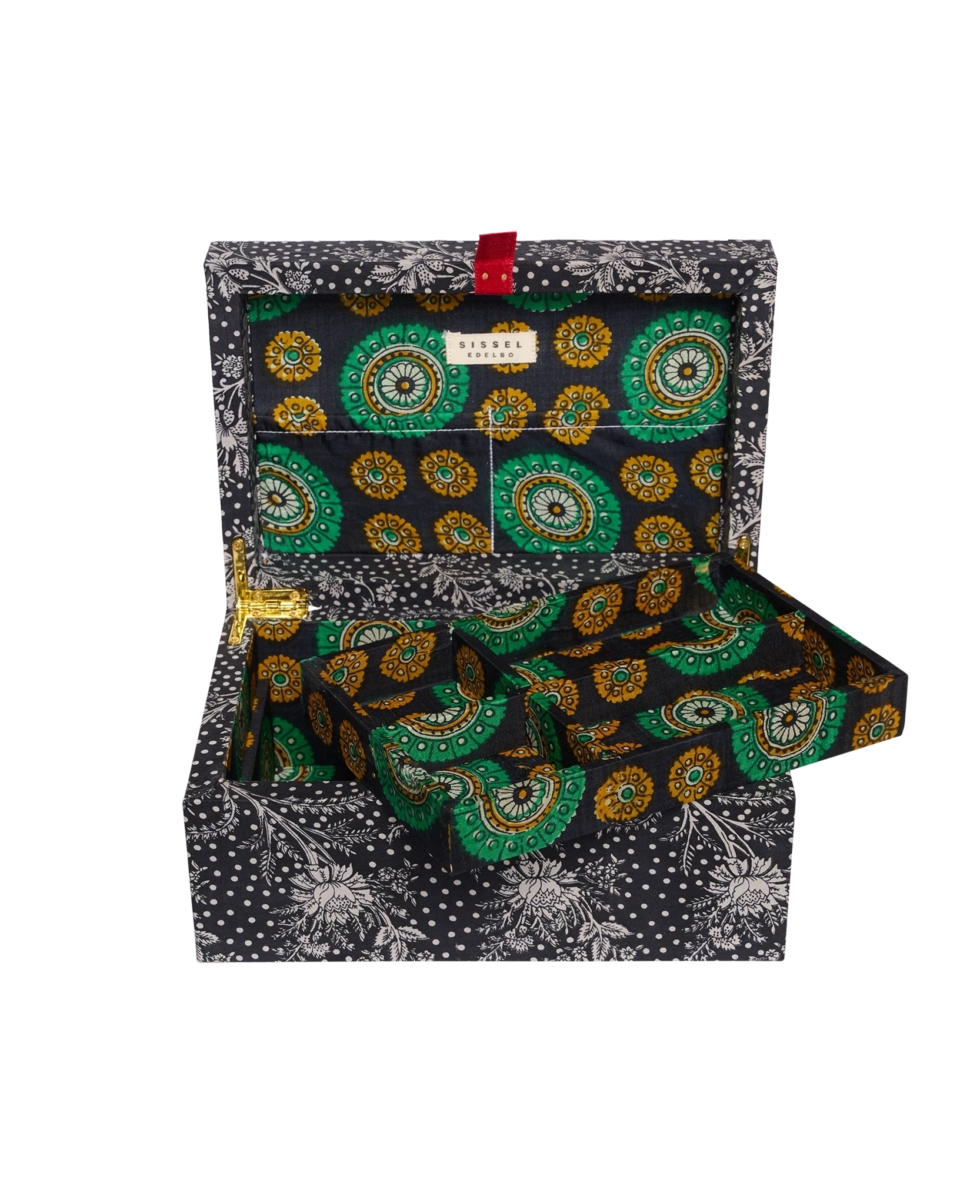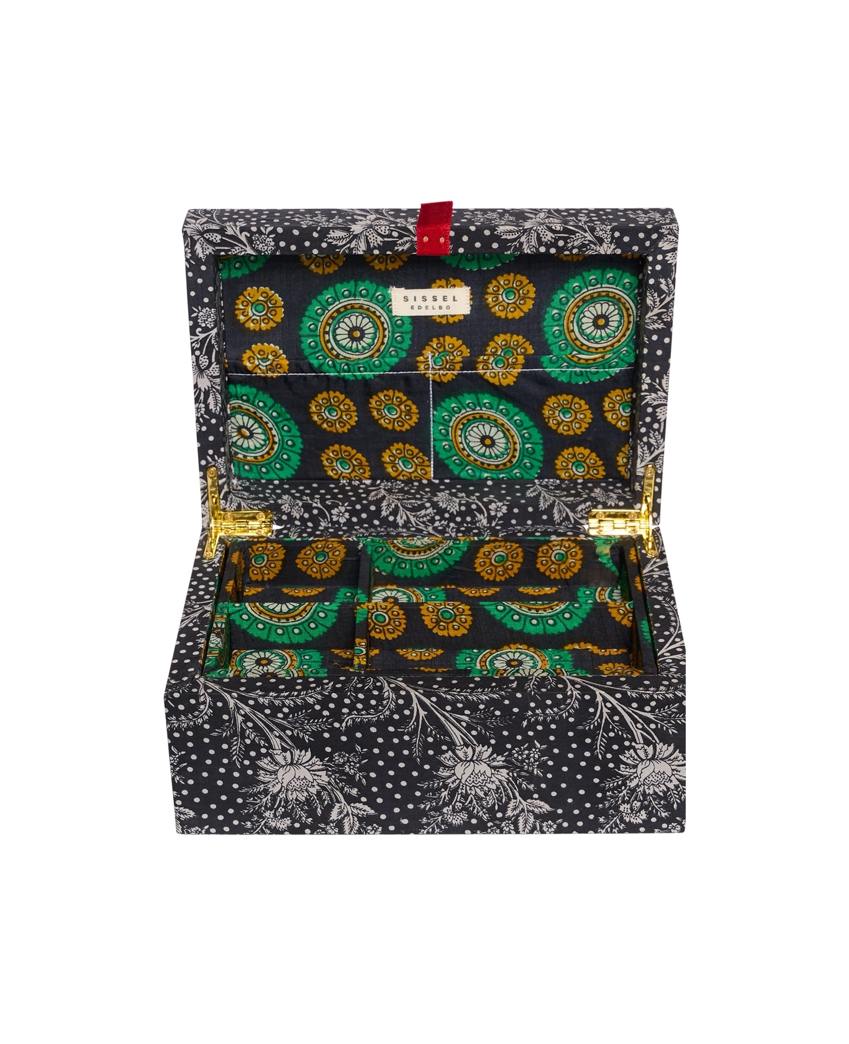 Jacita silke smykkeskrin sort blomster