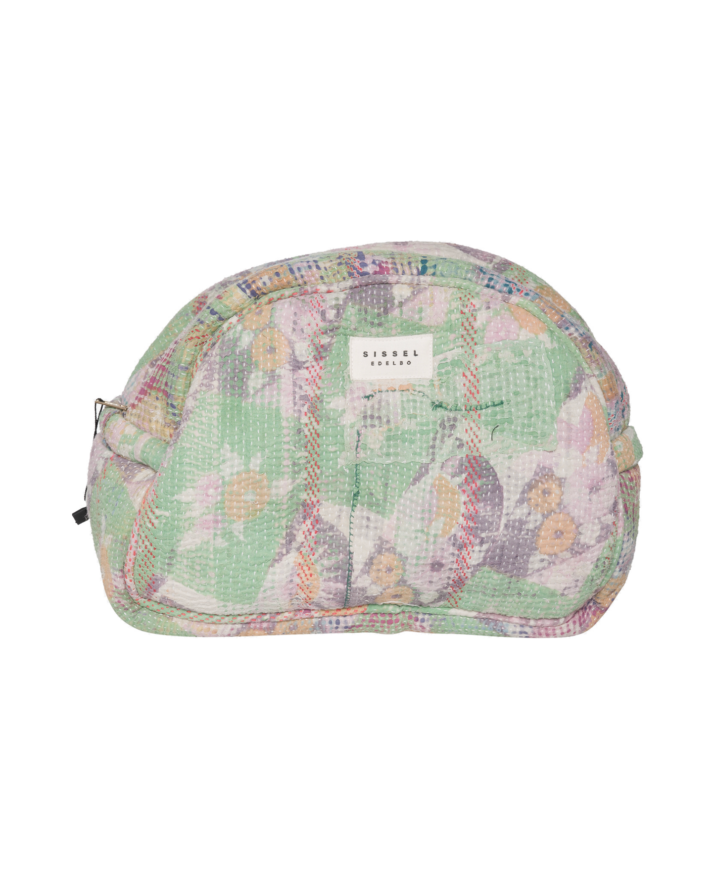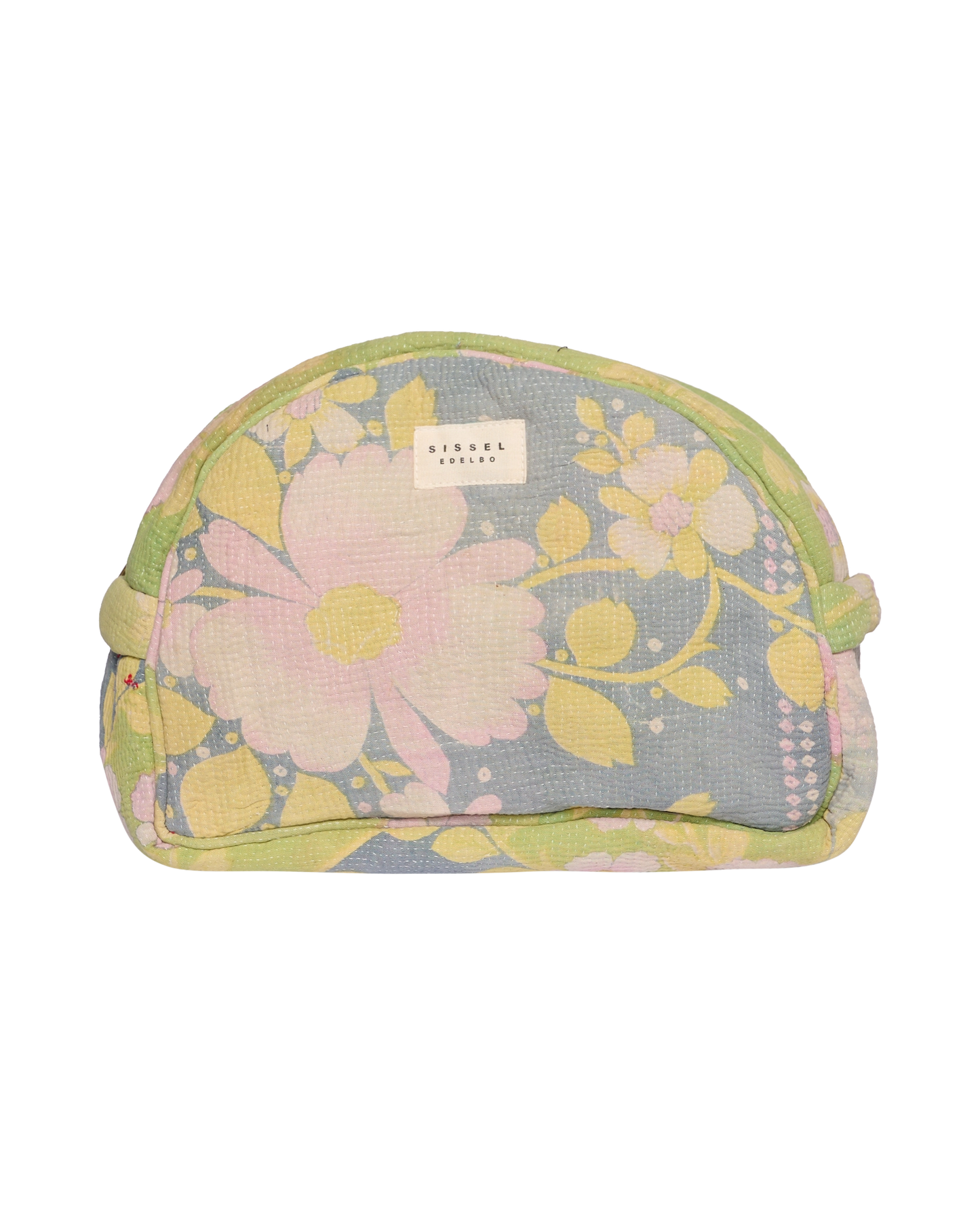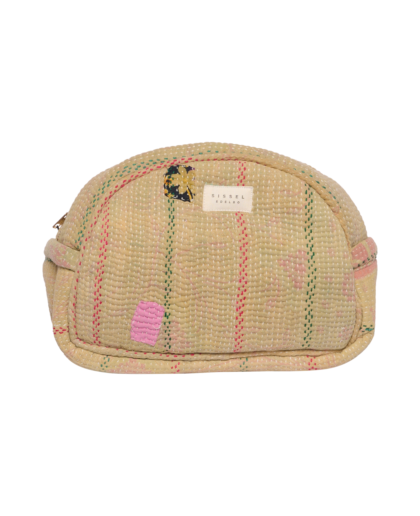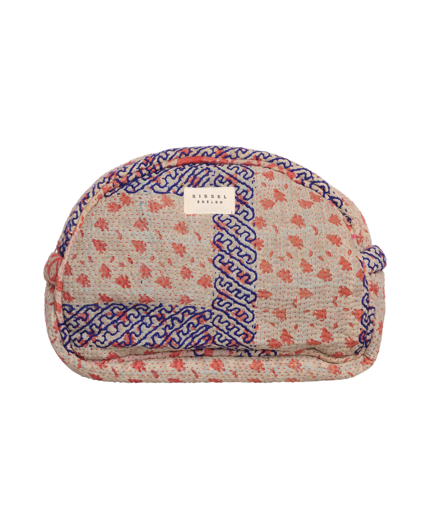 Karla Wash Bag har en perfekt organisk afrundet form. Den buede top lukkes med en gylden YKK lynlås. Vaskeposen er lavet af et genbrugt kantha tæppe og er let polstret. Den har en lynlåslomme inde i foret, som er lavet af 100% økologisk bomuld. Vi laver et begrænset antal poser af hvert kantha tæppe og derfor kan der forekomme forskel på farverne fra billedet.